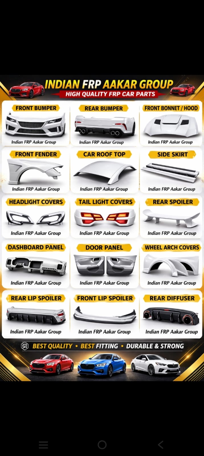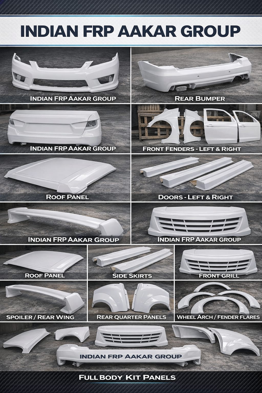 Established in 2024, Indian FRP Aakar Group is a progressive manufacturer based in Bhopal, Madhya Pradesh, India, operating under the brand name Indian FRP Aakar. The company specializes in producing high-quality Fiber Reinforced Plastic (FRP) products designed for automotive, industrial, and decorative applications. With a commitment to durability, innovation, and precision engineering, Indian FRP Aakar focuses on delivering products that combine strength, lightweight properties, and modern design. Our manufacturing approach integrates advanced FRP technology with strict quality standards to ensure long-lasting performance and reliability.