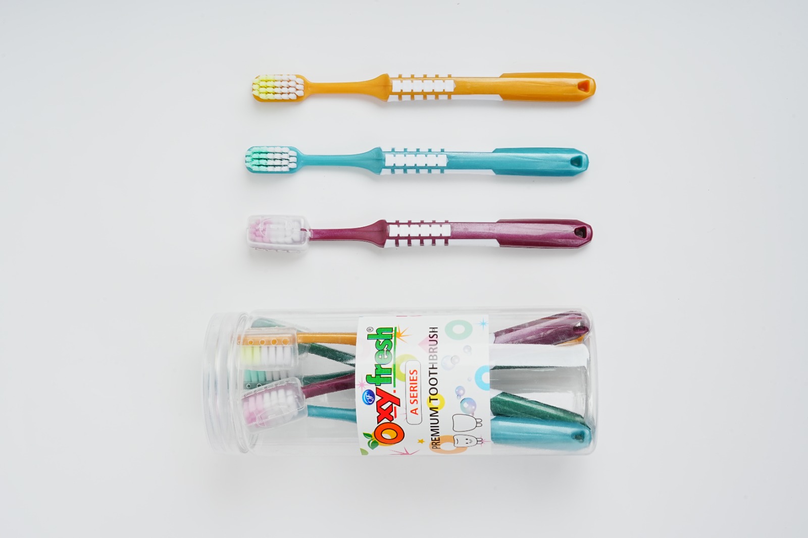 The OXY FRESH product range includes toothbrushes, toilet brushes, cloth brushes, and other essential cleaning accessories designed for effective daily use. Each product is manufactured using quality raw materials and modern production techniques to ensure strength, longevity, and user comfort. Our designs focus on functionality, ergonomic handling, and hygiene, making them suitable for homes, hotels, hospitals, offices, and institutional use. Continuous product improvement and strict quality checks help us maintain consistency and customer satisfaction across all offerings.