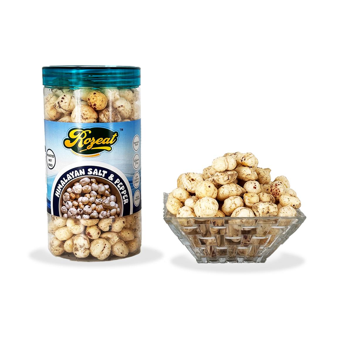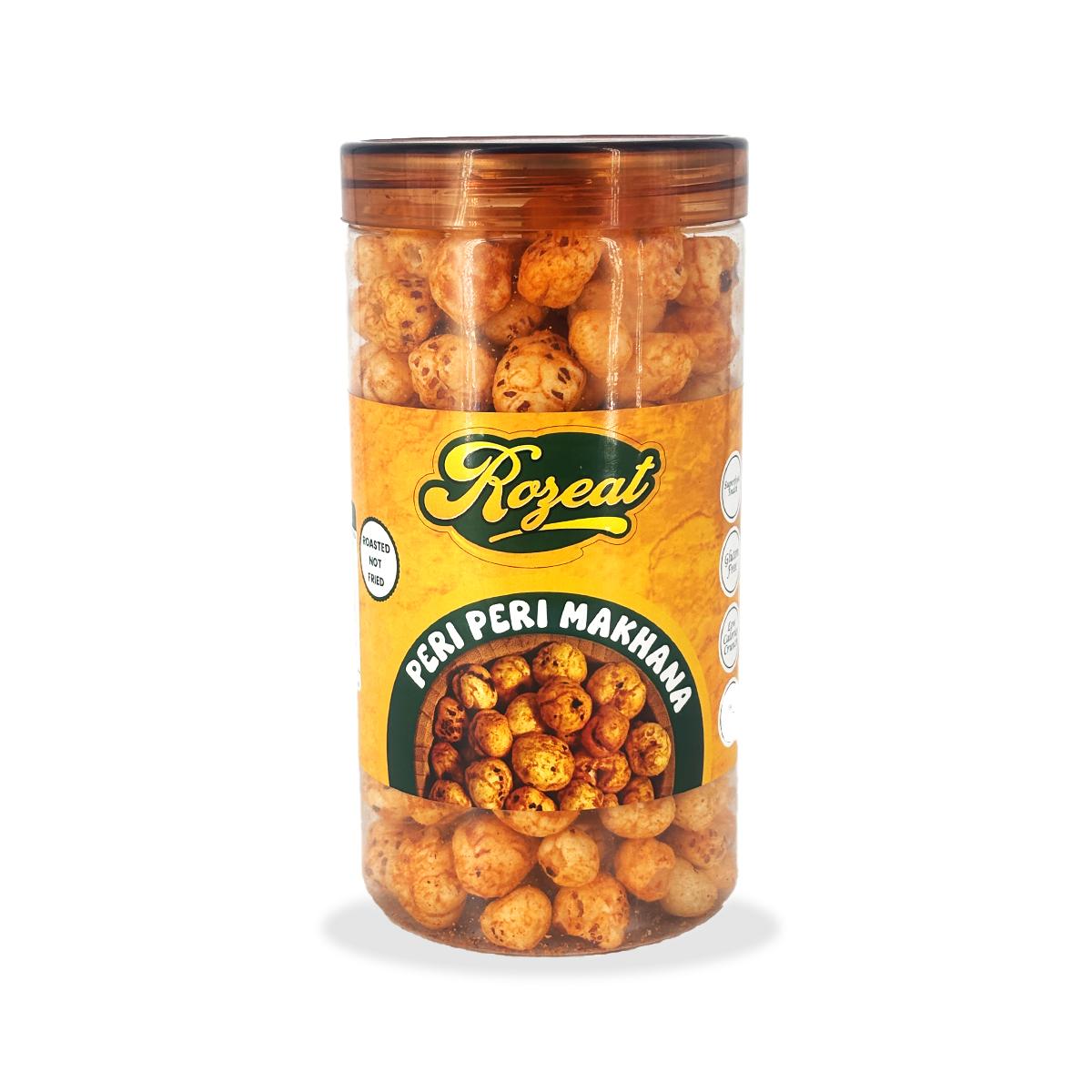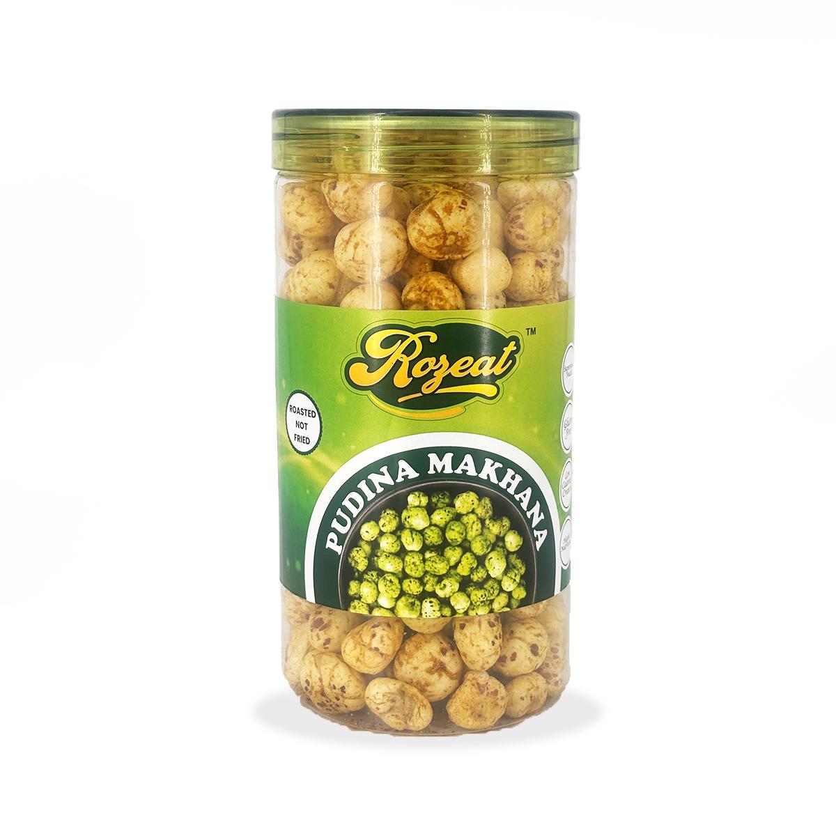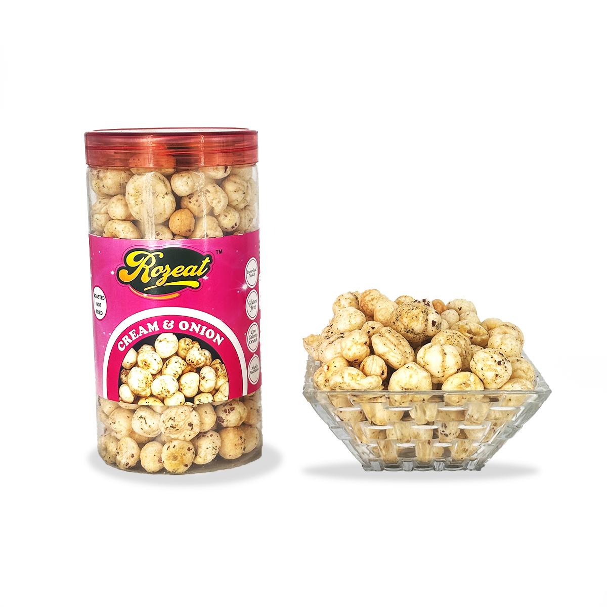 The Rozeat product portfolio focuses on value-added makhana (fox nuts) snacks that cater to health-conscious consumers as well as flavor enthusiasts. Our offerings include Pudina Makhana, Roasted Makhana, Peri Peri Makhana, Cream & Onion Makhana, Himalayan Salt & Pepper Makhana, Tangy Tomato Makhana, and many more exciting variants. Each product is carefully roasted using controlled processes to preserve natural nutrients while delivering a light, crunchy texture and bold flavors. Rozeat makhana snacks are cholesterol-free, low in fat, and suitable for all age groups, making them ideal for retail, corporate gifting, and modern trade channels.