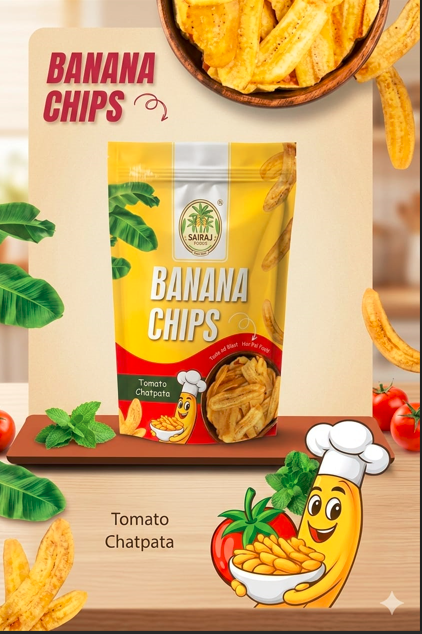 Under the Sairaj foods brand, the company specializes in manufacturing a wide variety of flavored banana chips designed to suit diverse taste preferences. Our popular product range includes Chatpata Seasoning Banana Chips, Tomato Chatpata Banana Chips, Pudina Falhari Seasoning Banana Chips, Salted Flavor Banana Chips, and several other innovative snack variations. Each product is carefully processed using selected raw materials and advanced production techniques to ensure freshness, crispiness, and authentic taste. Hygienic packaging and strict quality control measures help preserve flavor and extend shelf life, making our snacks ideal for retail stores, supermarkets, wholesalers, and snack distributors.